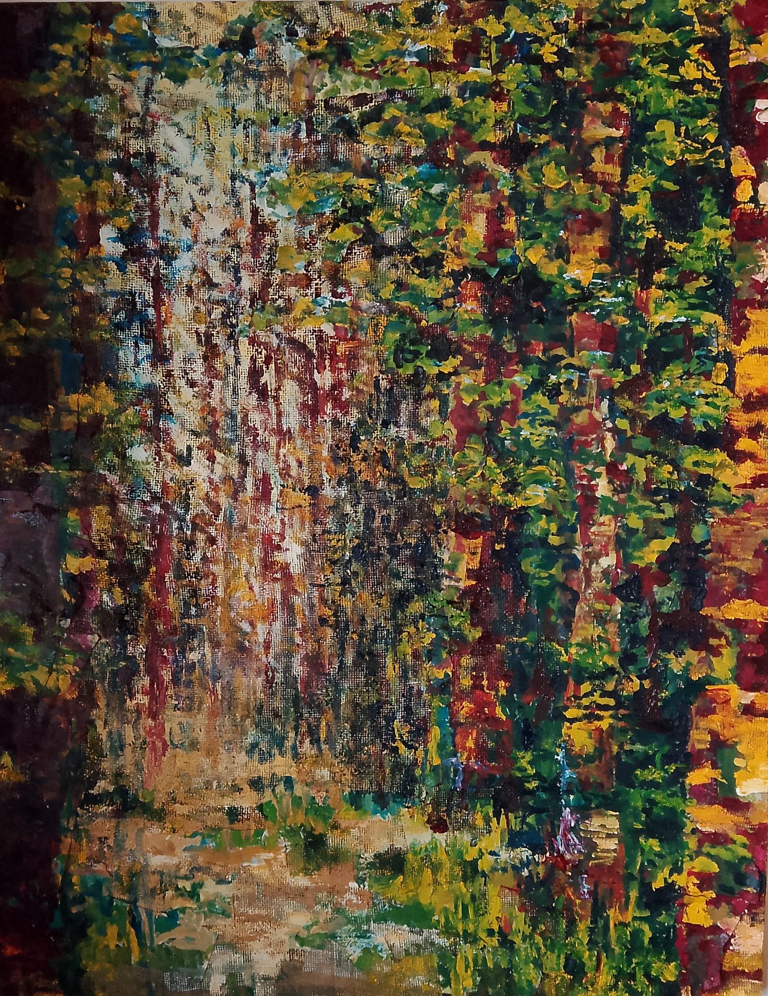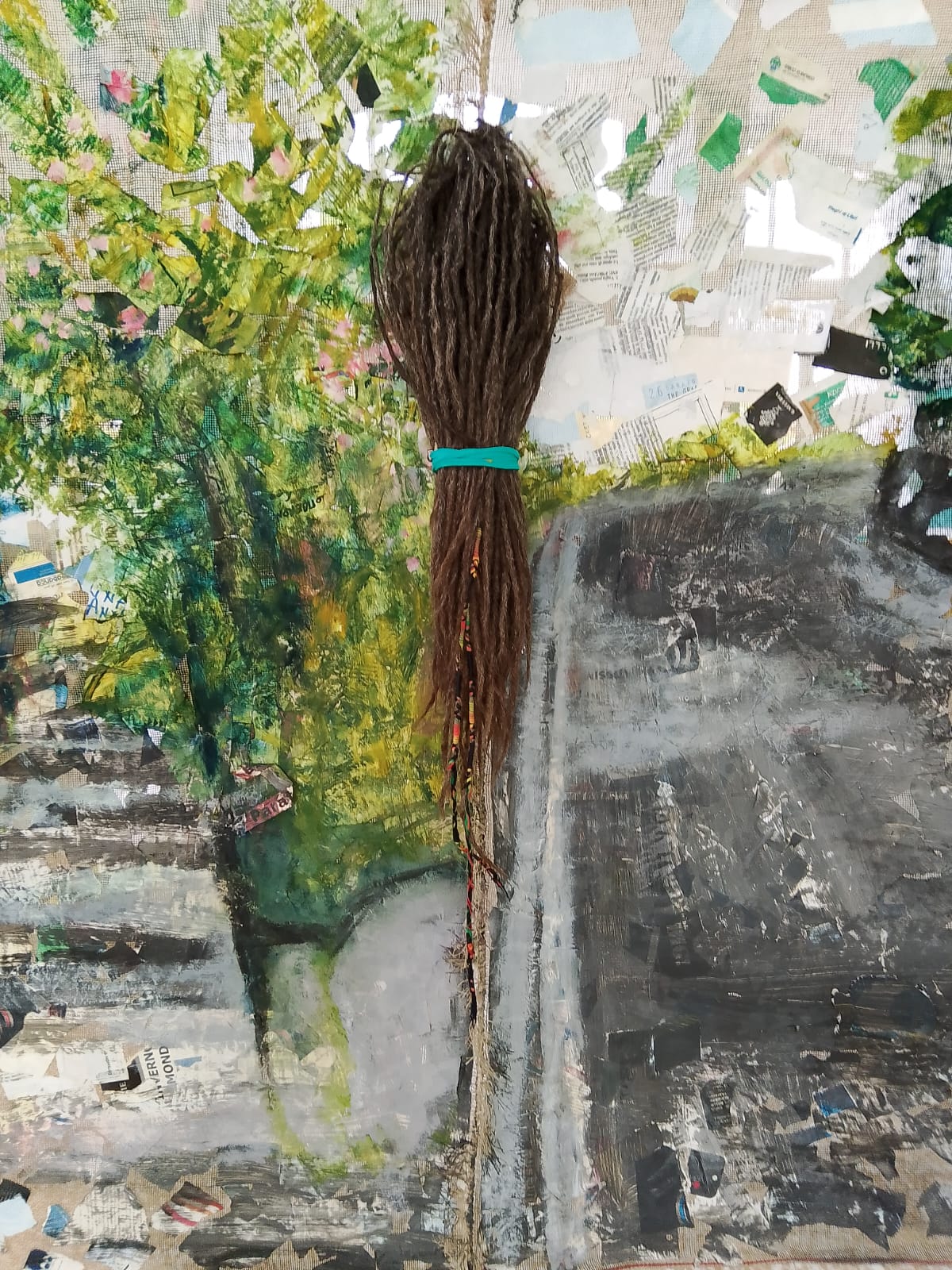 Olio su collage su juta, 80×120 cm., 2025